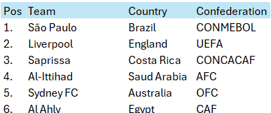 | 12 Dec | Sydney FC | Australia | 0 | 1 | Saprissa | Costa Rica |